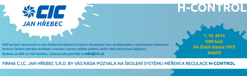 v termínech 1.10. a 2.10.2014 proběhnou školení H-Control. Školení H-Control je nutností pro montážní a realizační firmy. Toto školení probíhá každý rok a platnost certifikace je dva roky. Rádi Vás tedy uvidíme u nás v centrále na Dobříši v ulici Na Zlaté stezce 1075 v 9:00 hod 1.10.2014.